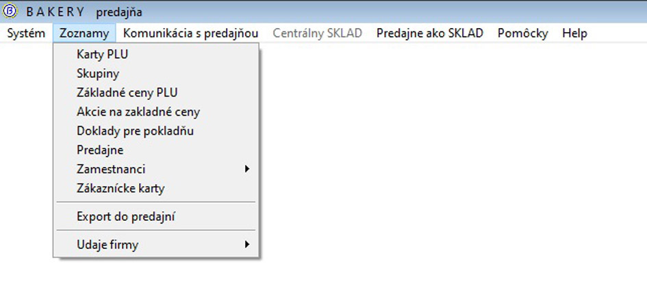 Poznámka: Program Centrála - Manager pokladní je vhodné inštalovať na notebook pracovníka zodpovedného za predajne, aby mohol vykonávať zmeny pre predaj tiež mimo sídla firmy – napríklad priamo v predajni. V pokladni sa nemôže zmeniť žiadny údaj o PLU - názov, cena, akcia. Aktualizácia je vždy exportom z programu Centrála - Manager pokladní a načítaním do pokladne.